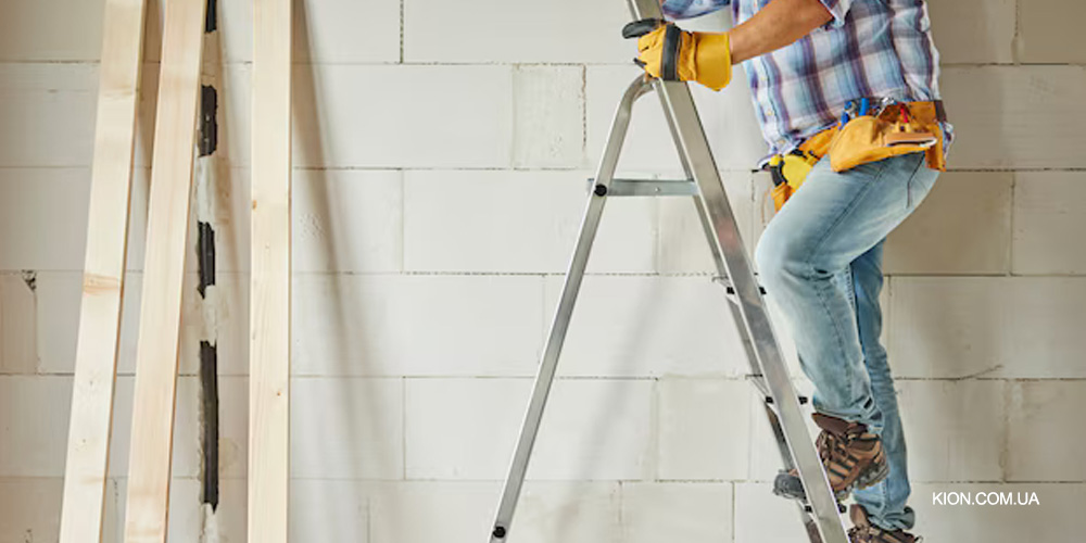 - Для работы на большой высоте подойдут стремянки с удлинителями.