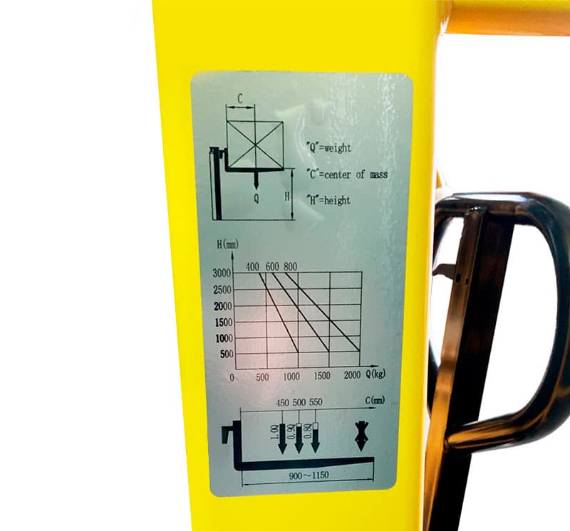 Максимальная высота подъема груза, 2000 мм