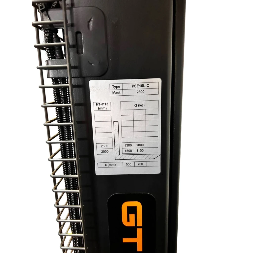 Характеристики Штабелер электрический GTM PSE15L-C 2600 1,5т/2,6м c АКБ Li-ion 24В 60 А*ч (PSE15L-C 2600)